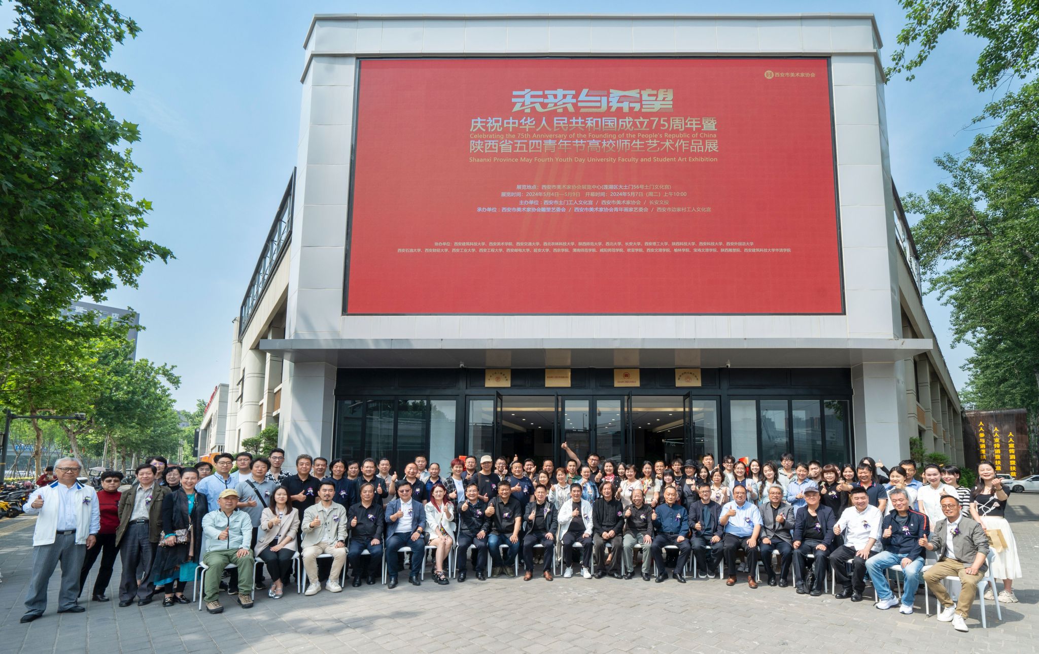 、西安交通大学,陕西师范大学、西北大学、西安工程大学、延安大学等二十多所高校协办。展览展出的作品种类多,有国画、油画、雕塑、水彩等,不仅具有高度的艺术价值,更承载着青年一代的文化自信与社会责任感。