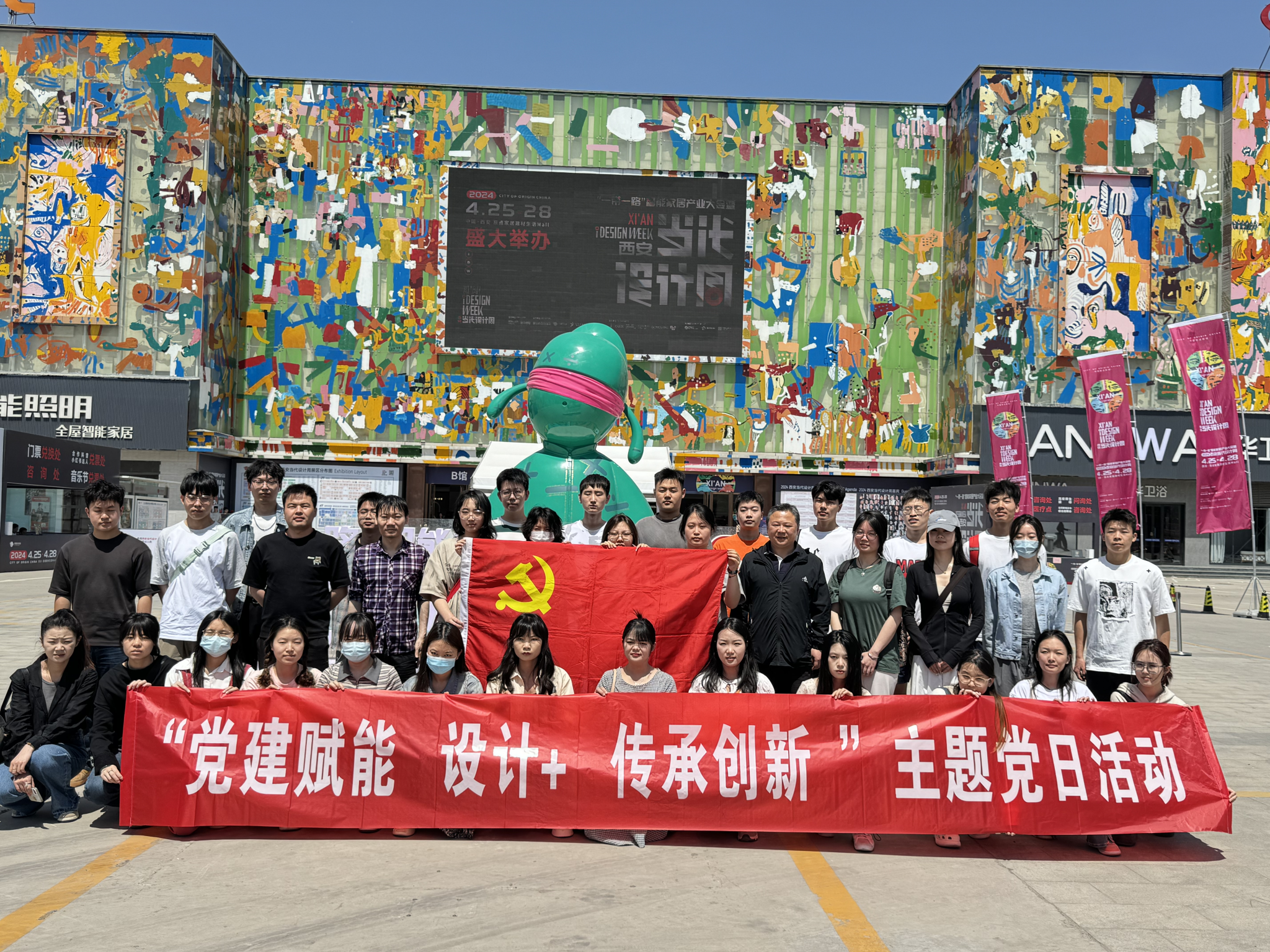 党员代表及第二十期入党积极分子40余人开展“党建赋能 设计+ 传承创新”主题党日活动,师生前往咸阳市泾阳县参观2024西安当代设计周展览并听取报告。