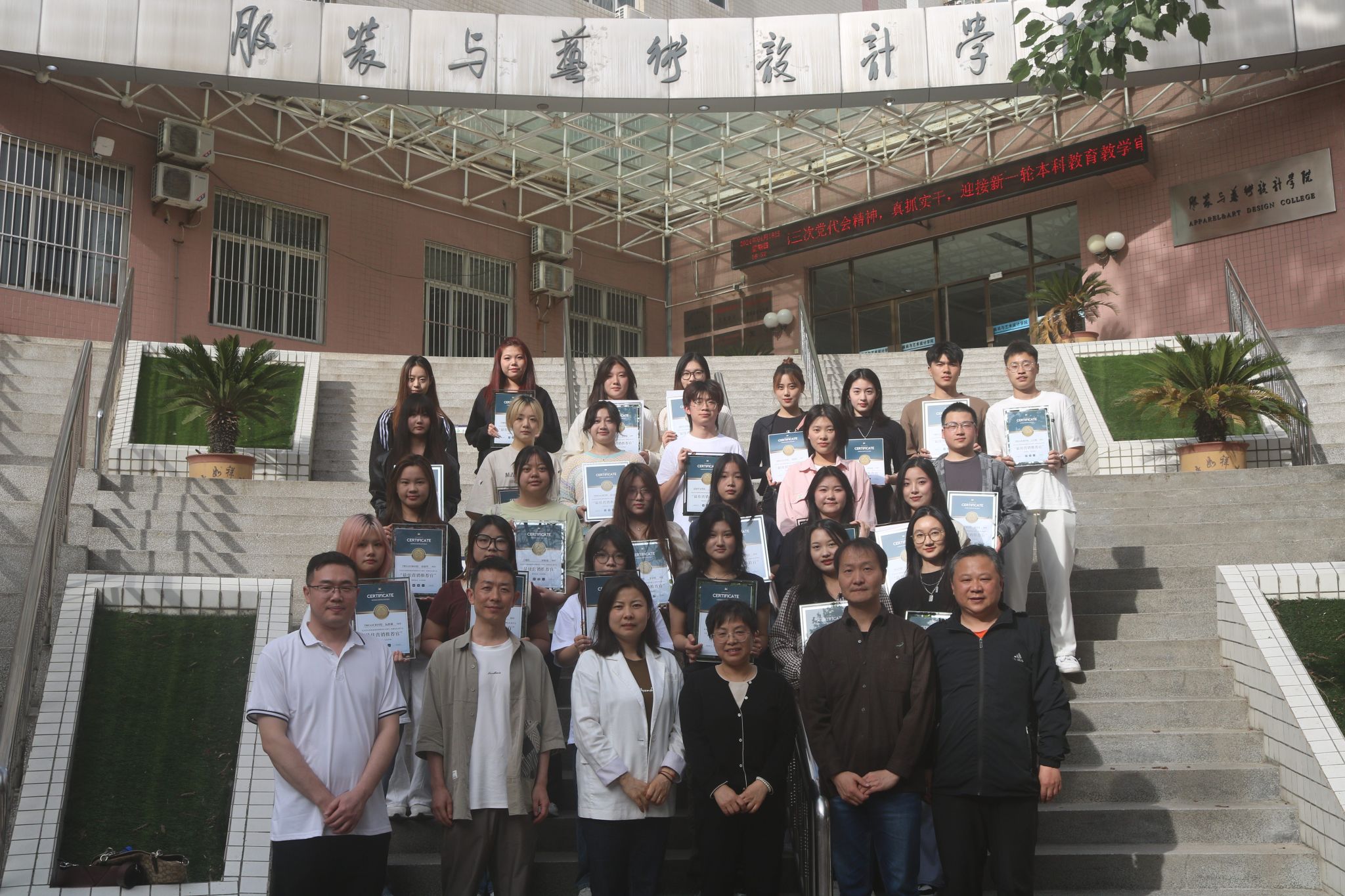 (爱慕集团营销推荐官大赛颁奖仪式中获奖同学与老师们合影现场)