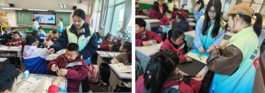 的20余名青年志愿者前往临潼斜口小学开展雷锋月环保支教活动。在支教活动课堂上,志愿者们为斜口小学的师生们准备了丰富多彩的环保主题课程和互动游戏,蔺荷、孟凯怡、热依汗·依明等志愿者讲解环保知识、展示环保实践,向小朋友们传递了节约资源、减少浪费、保护环境的重要性,引导他们从小树立“绿水青山就是金山银山”的珍爱地球、热爱自然意识。青年志愿者们还与小朋友们一起动手制作“绿水青山就是金山银山”的环保手工作品,共同体验环保的乐趣。