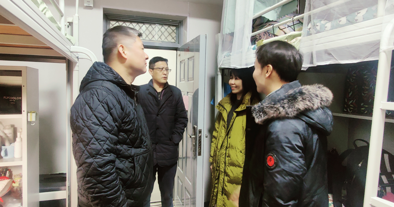 党委书记苏博、院长吕钊带队前往金花校区1号楼、2号楼、金花公寓走访回迁宿舍,与学生深入交流,了解学生思想状况,生活所需,叮嘱学生积极开展新学期新环境学习生活规划,学生精神状态饱满,生活氛围良好。