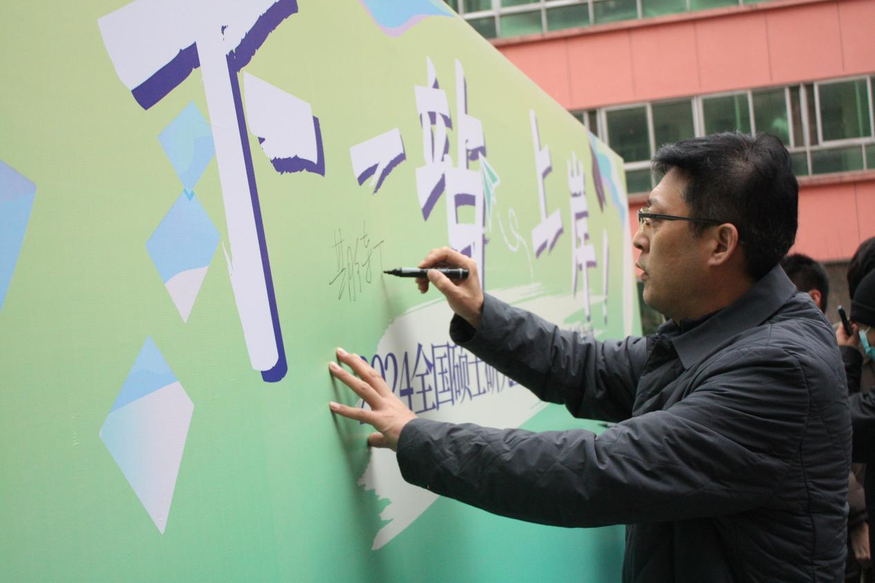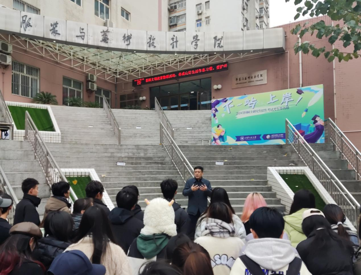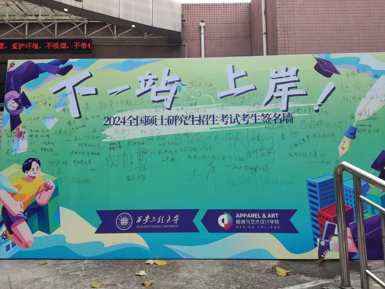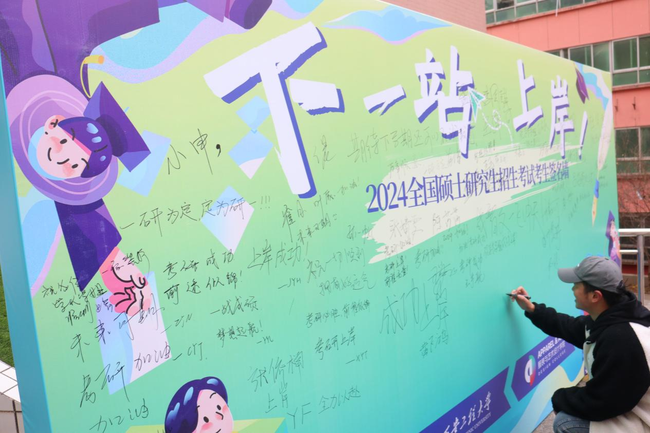 在金花校区服装楼前举办为期一周的“2024,我们一研为定”考研签名活动。为考研学子准备了特别的礼物,送上了温暖的问候与亲切的祝福。