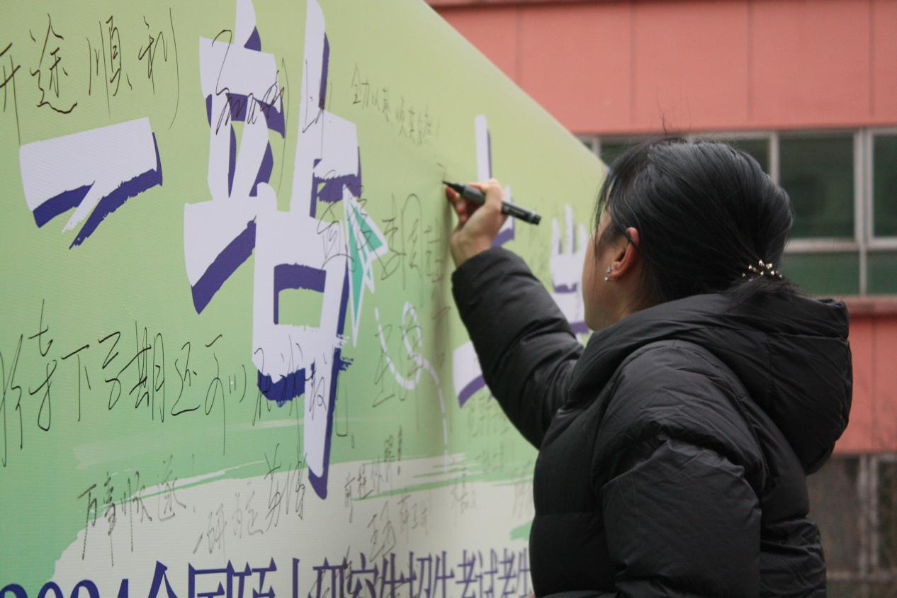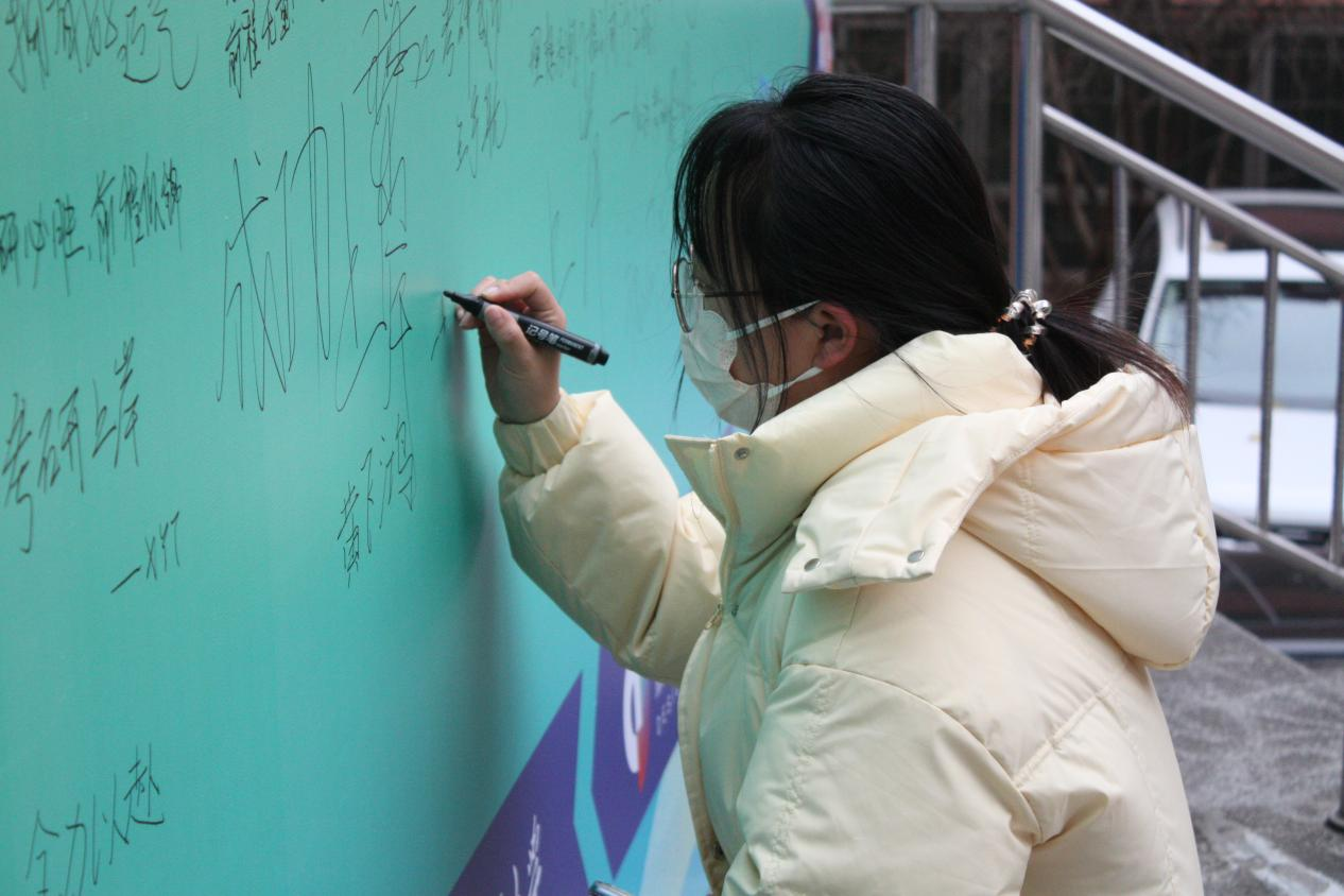 党委书记苏博为在场的考研学子们送上祝福。他分享了自己的考研经历,就当前考研形势为大家具体分析了考研的益处,并从新时代加强党的建设、以人民为中心的发展观、绿水青山就是金山银山的生态观等角度分析考研题目,帮助学生们坚定考研目标,增强考研信心,提前做好考研选择与规划。听了苏博书记的分享后,考研学子们纷纷在签名墙上留下了自己的签名和决心,并表示将在接下来的备考阶段,以积极的态度、强健的体魄面对研究生入学考试。活动现场,学生会的学弟学妹们为考研学子送上考研加油包和亲手制作的祝福卡片,给予学长学姐鼓励与温暖。