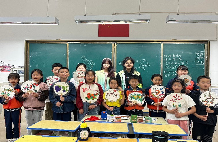 2020级服装与服饰设计专业获国家助学金的同学们,依靠自己的专业所学,积极备课,严格按照特色社团课程要求准备课程大纲和课程设计,并与康复路小学美术教研组教师共同探讨课程主题、课程模块设置、课程效果呈现等环节,最终确定“团扇绘制”、“扎染技法学习”和“服装设计”等主题。