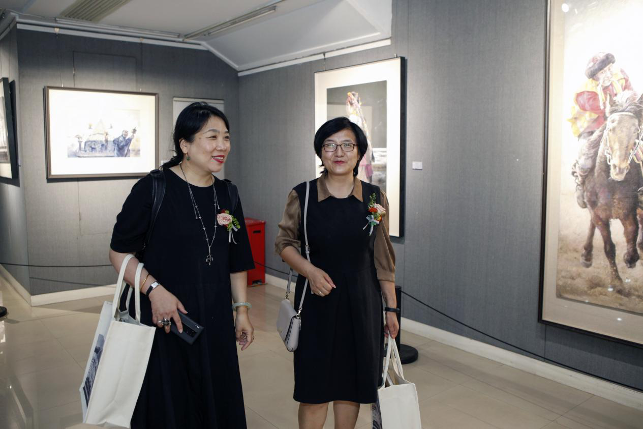 西安工程大学科研处处长张洛红、陕西省美术家协会水彩艺委会秘书长杨毅柳等参观画展