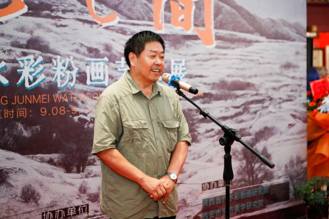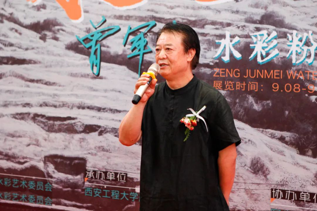 陕西省美术家协会副主席巨石、陕西省美术家协会副主席、水彩艺委会主任蔺宝刚、中国美术家协会水彩画艺术委员会委员、陕西省美术家协会水彩艺术委员会副主任史涛在开幕式现场分别致辞。