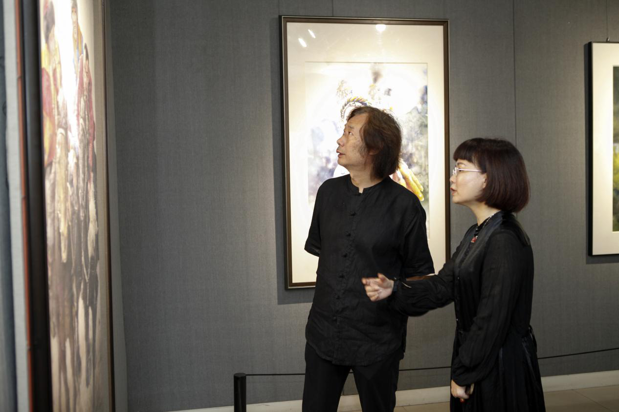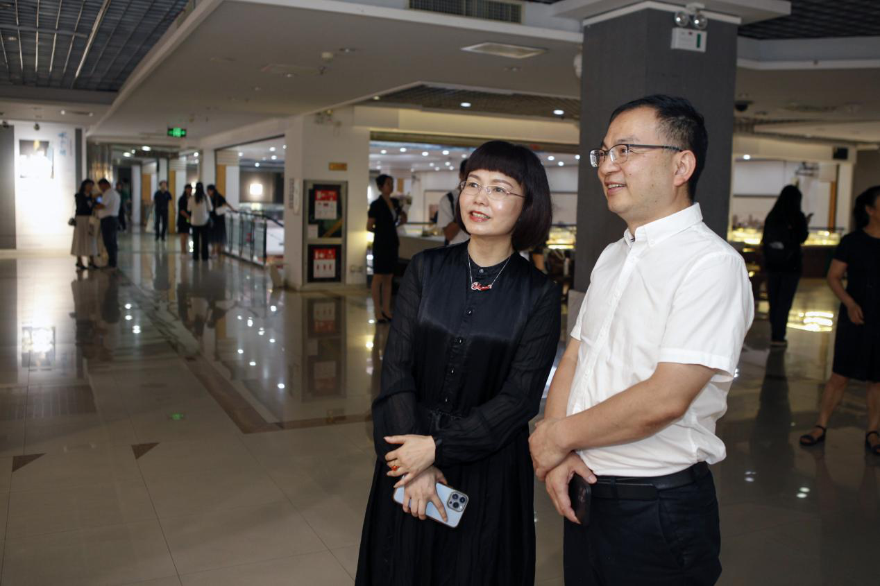 西安美术家协会水彩艺委会副主任陈静、委员宋卫东参观画展