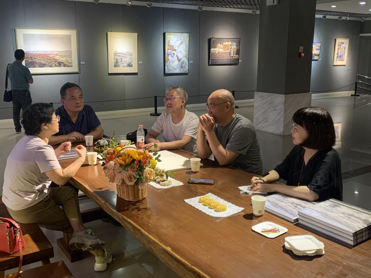 中国美术家协会水彩画艺术委员会委员史涛教授主持研讨会,陕西省美术家协会水彩艺术委员会刘翔,西安市美术家协会水彩艺委会副主任樊军让、副秘书长宁宇航,西安美术925足球直播