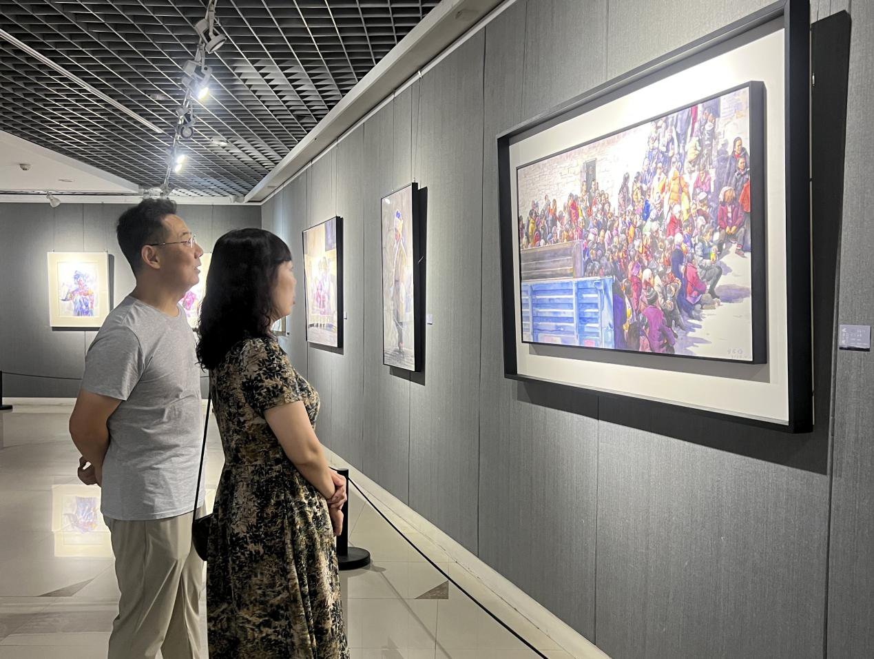 党委书记胡西民与夫人参观画展