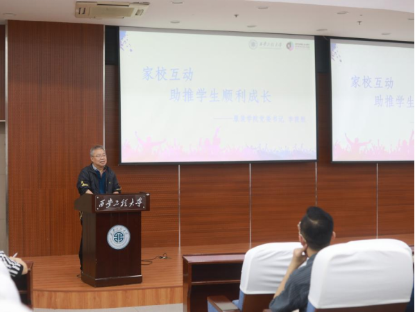 党委书记李筱胜做了“家校互动、助推学生顺利成长”的主题讲座,李书记以自己多年学生教育管理经验,用轻松幽默的语言对大学阶段易出现的各种问题和影响学生学业生活的因素进行介绍,要求家长密切关注学生动态,积极与学校联系,共促学生成长成才。