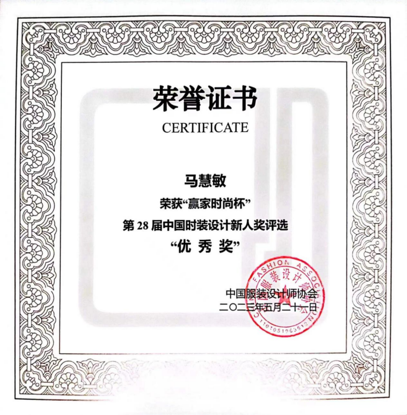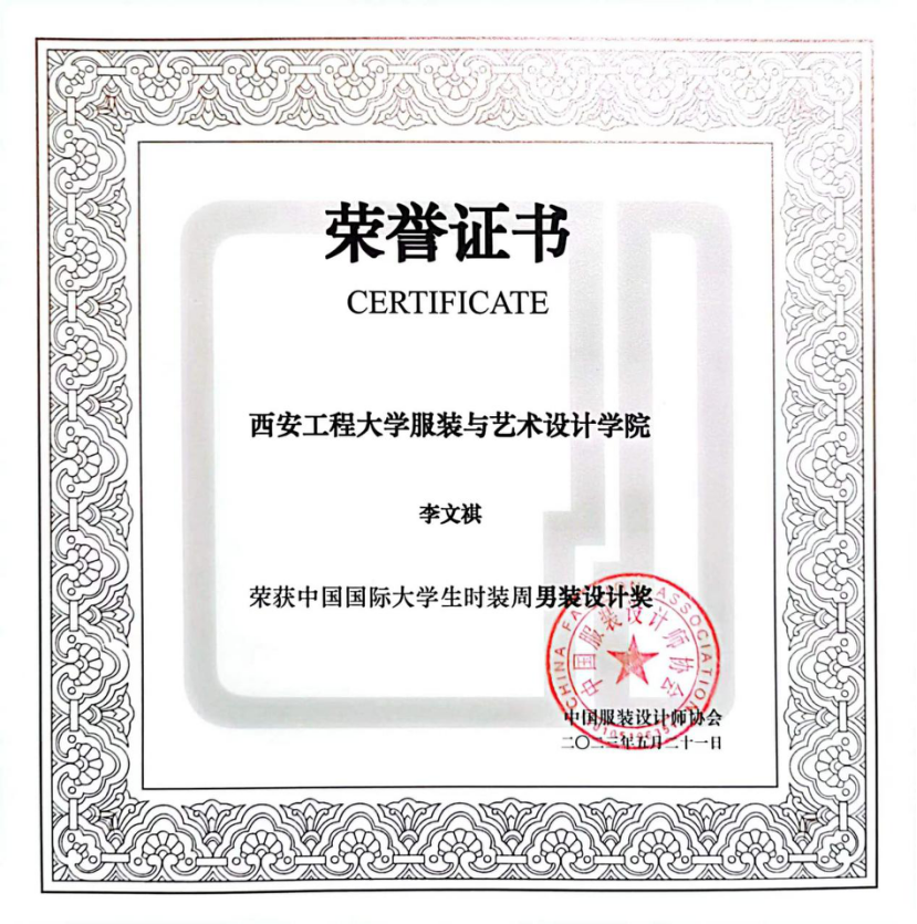 荣获“2023中国国际大学生时装周人才培养成果奖”,学生李文祺荣获“中国国际大学生时装周男装设计奖”,学生马慧敏荣获“赢家时尚杯”第28界中国时装设计新人奖评选“优秀奖”。