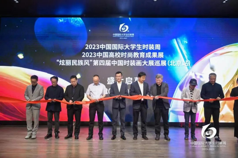 2023中国国际大学生时装周于5月16日-21日在北京隆重举行,16日高校时尚教育成果展及“炫丽民族风”第四届中国时装画大展巡展(北京站)同期开幕,我校戴鸿副校长受邀出席开幕仪式并剪彩。