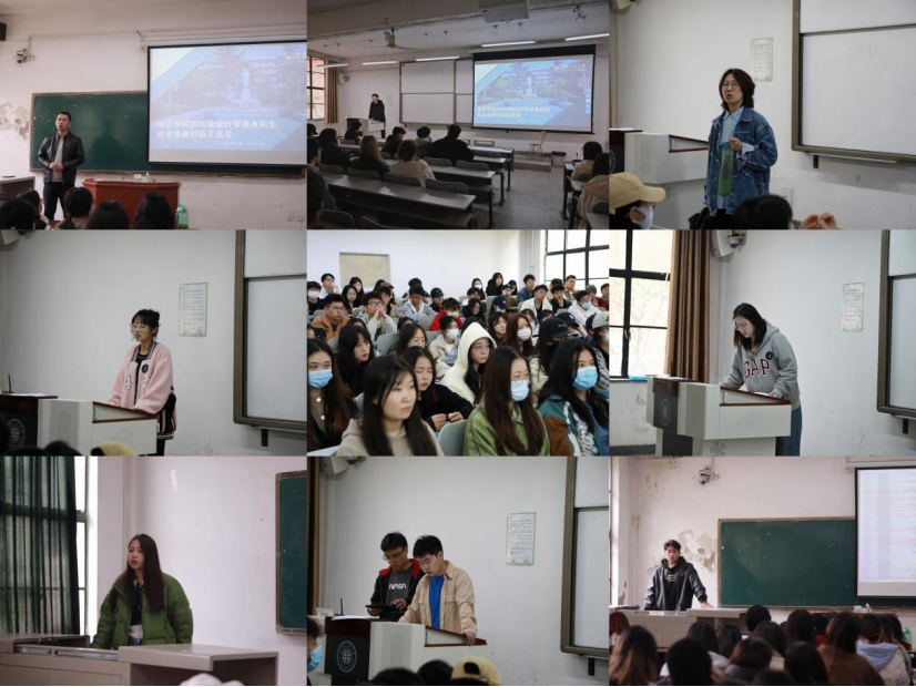 其次,由6名学生代表发言。第一组美术学的鞠金钟、何叔阳同学,他们结合个人的兼职经历,讲述了专业时下的就业趋势,提醒同学们要多渠道关注就业信息。第二位美术学的魏薇同学,她分享了西美招聘会的见闻,详细介绍了业内头部企业米哈游的招聘情况,鼓励大家提早准备,争取在即将到来的秋季招聘获得心仪的offer。第三位环境设计的赵珈艺同学,从如何撰写一份好的简历和作品集入手,系统性的为同学们介绍了求职的流程,使同学们对简历和作品集的重要性有了清楚的认知。第四位环境设计的康春林同学,结合自己当天与HR的面试经验,提醒同学要及时关注校内外招聘会,为同学们提供了更多的招聘渠道。最后,环境设计的周杉杉同学,结合她本学期的实习经历,从环境设计专业的求职方向、企业类型、岗位设置和求职准备等方面给同学们分享了经验。