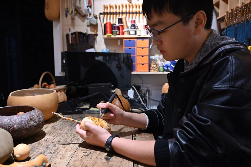 (2020级视觉传达02班余洋钻研葫芦烙画并参加专业设计比赛)