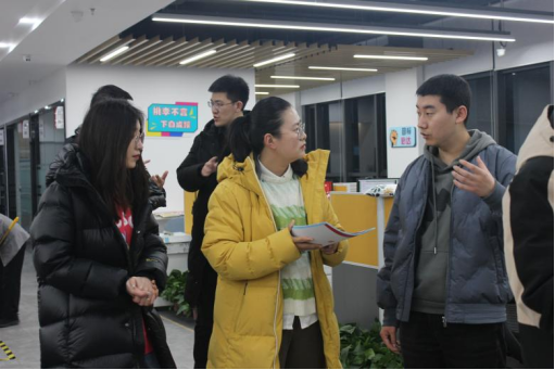 2023届新入职毕业生王嘉欣正在进行课程演练,孙晨倩和谭赛江询问了学生入职后工作生活情况,并鼓励学生在企业中好好提升磨炼自己,努力工作。在座谈会上,925足球直播