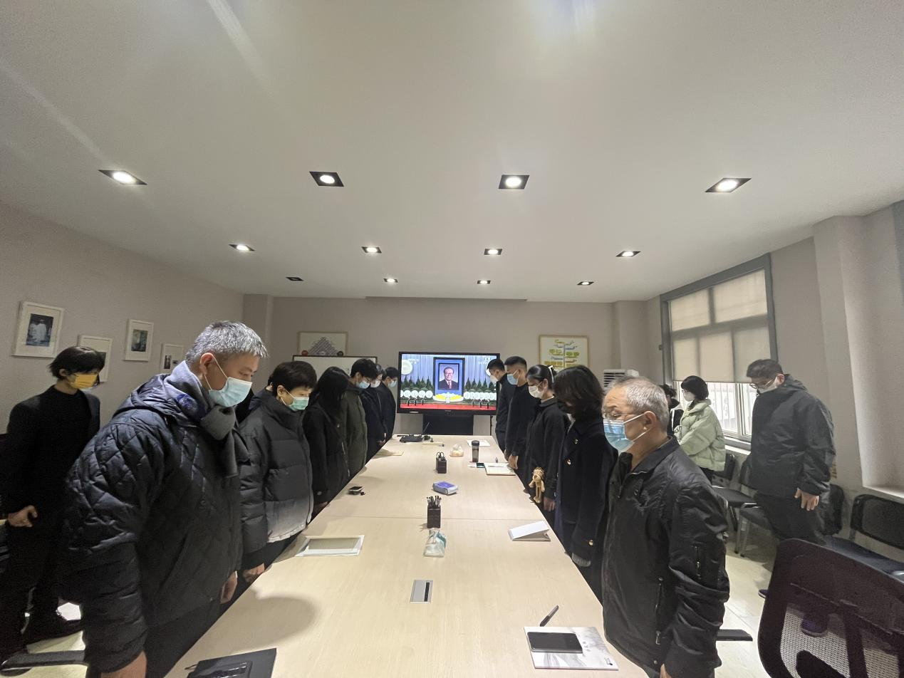 党委委员田宝华以及部分服艺党支部支委和党员在服装楼三楼会议室线下集中收看追悼大会直播,支部其他党员因疫情封控线上收看直播。
