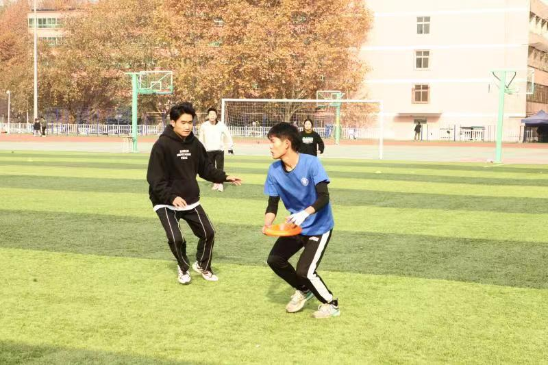 共8支队伍同台竞技,现场气氛活跃、融洽。接盘、传盘、跑位、跳跃,同学们随时调整站位,预先跑到合适的位置准备接盘,在来回奔跑中挥洒汗水,每一次抛盘与接盘都考验着队员之间的协作配合。