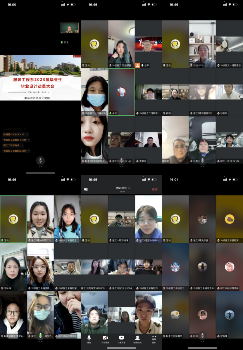 服装工程系在线上召开了2023届毕业生毕业设计动员大会。服装工程系全体老师以及2019级服工班全体同学参加了此次会议。会议由服装工程系副主任吴龙老师主持,从毕业设计的目的、导师安排、时间安排、毕业设计的内容、毕业实践等五个方面详细的介绍了毕业设计过程。