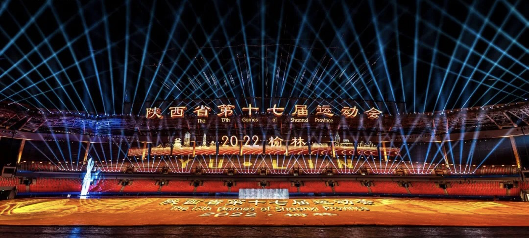 2022年8月6日19点,省运圣火在榆林体育中心体育场熊熊燃起,榆林用一场国际化、时代化、特色化的开幕式盛宴,让三秦百姓大饱眼福。开幕式总时长100分钟,演职人员4500人,以“追梦启新篇”为主题,包括放飞梦想、跨越山河、潮燃今宵、拼搏时代、薪火相传、未来之约六个篇章,技术层面应用了LED地屏、无人机等先进技术,节目充分彰显陕西特色和榆林元素。