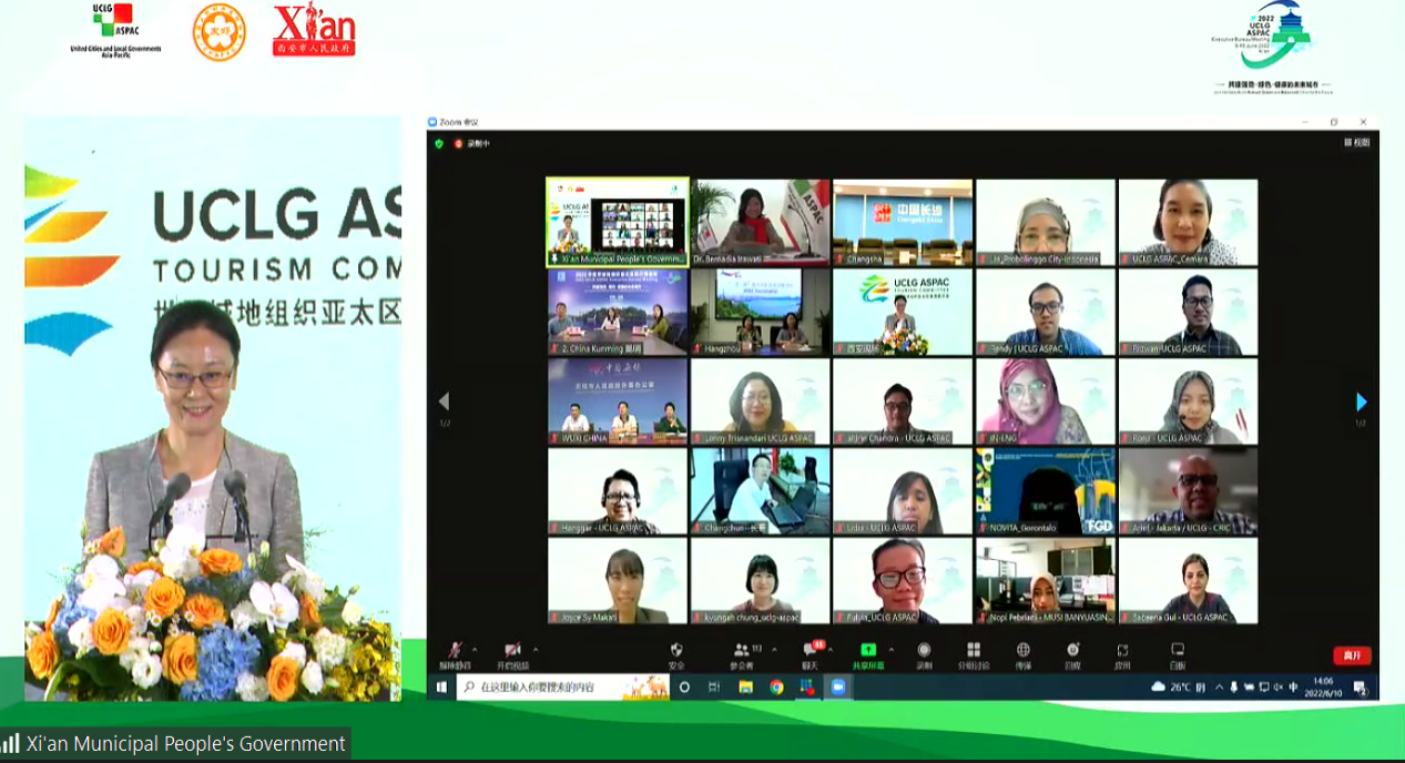 6月10日下午,世界城地组织亚太区旅游委员会第一届会员大会在西安顺利召开。此次会议以线上、线下相结合的形式举办,全国对外友协、文化和旅游部、世界城地组织亚太区的领导和代表,及旅游委员会会员城市代表等来自8个国家48个城市的81名嘉宾相聚云端;西安市领导、陕西省友协领导、西安市各区县、开发区代表及相关领域专家学者约50名嘉宾齐聚线下,见证组织发展迈入崭新阶段,共话未来合作发展新蓝图。