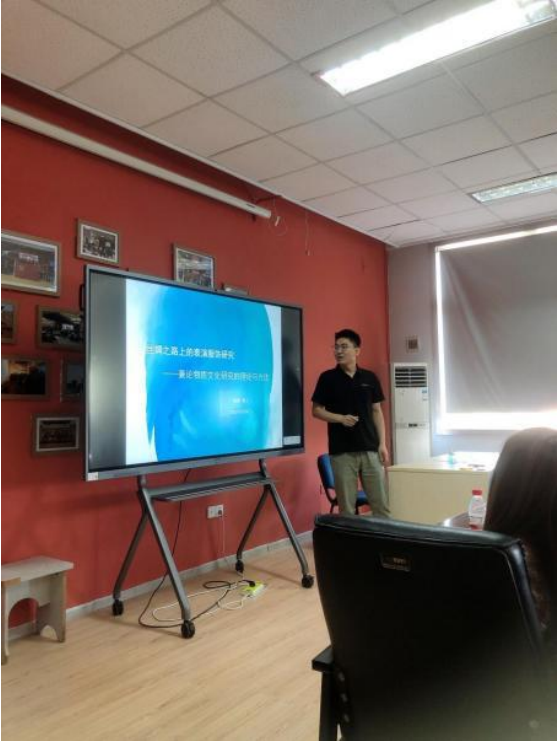 张彬博士围绕“丝绸之路上的表演服饰研究——兼论物质文化研究的理论与方法”为主题进行学术报告。首先汇报了近期发表的学术论文成果,并分享了如何在生活中发现问题和思考问题,锻炼学术思维。又介绍了七个学术研究方法,并重点阐述了“物质文化研究”的方法,从个案研究入手,逐步深入展开。提出 在学术研究中要有“新材料、新方法、新视角”,将宏观论述、中观考察、微观分析结合起来进行综合研究。汇报完毕又开展了热烈的学术讨论,希望在服饰研究中能更加全面、深入,突破原来的学科界限,将文史研究与文物研究相结合。