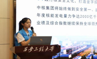 刘慧楠同学围绕核能助力双碳目标,清洁赋能美好未来方面展开宣讲,向同学们阐述了我国存在积极有序安全发展核电的紧迫性、优越性。虽然对于中国而言,从碳达峰到碳中和只有三十年的时间,时间更紧迫,减排规模也更具大。但是我国目前已经实现了核电规模化发展、形成了完整核电产业链、拥有坚实的人才保障。我国核电运营能力全球领先,拥有值得信赖的安全业绩。国家发展核电方针也更加积极明确,核能发展前景可期。“双碳”目标的提出,对应对气候变化、构建人类命运共同体,具有非常重要的现实意义,也对核能产业高质量发展和企业绿色发展提出了新要求。
