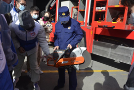 随后,宣传员带领大家参观了消防车及抢险车,现场演示了切割器、破拆工具、机动链锯的使用方法。同时,以赛促学组织了一场消防员出险换装比赛。参与和观看比赛的同学纷纷感叹消防员工作非常不易,火灾面前,时间就是生命,每一秒都至关重要。