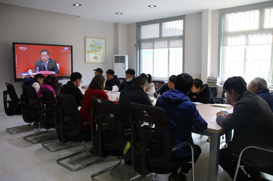 党委书记李筱胜,院党委副书记、院长吕钊和党支部全体成员一起观看新闻发布会。此次学习活动由党支部书记蔡洋组织和主持。