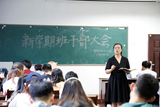 2019级辅导员孙晨倩、李涵博和谭赛江出席本次会议,2019级各班班委参加会议。