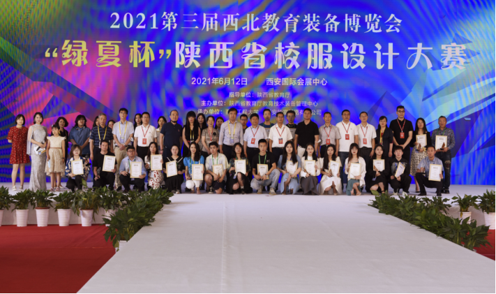 6月12日上午,由陕西省教育厅指导,省教育厅教育技术装备管理中心主办,西安工程大学与西安华富展览有限公司联合承办的2021“绿夏杯”陕西省校服设计大赛,在西安浐灞会展中心圆满落幕。大赛从征稿、初赛直至决赛历时三个多月,最终有来自全国各地9所院校、9家企业的32个系列在决赛中一较高下。