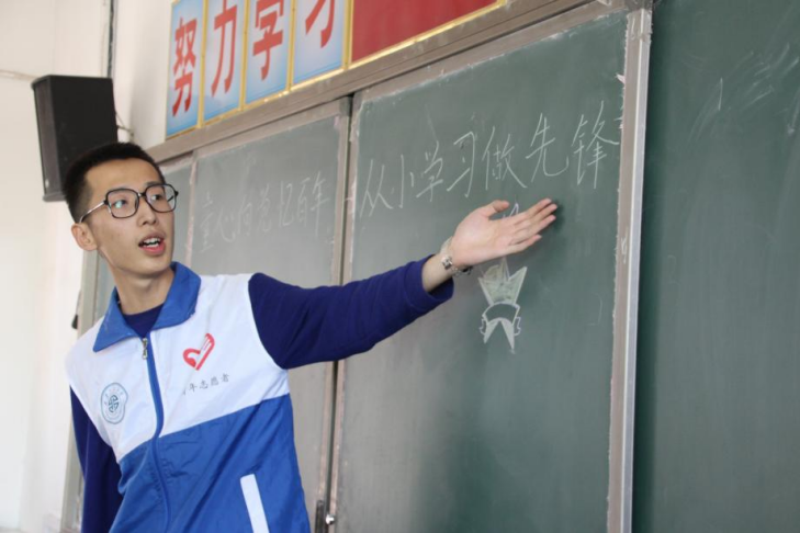 18名青年志愿者于4月28日下午,来到临潼区斜口小学开展“童心向党忆百年,从小学习做先锋”支教活动。