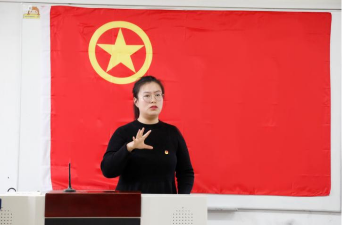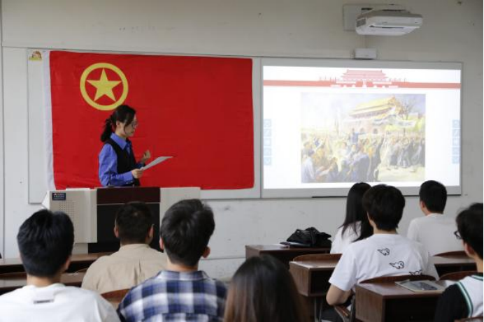 团总支书记马薏雯介绍五四运动