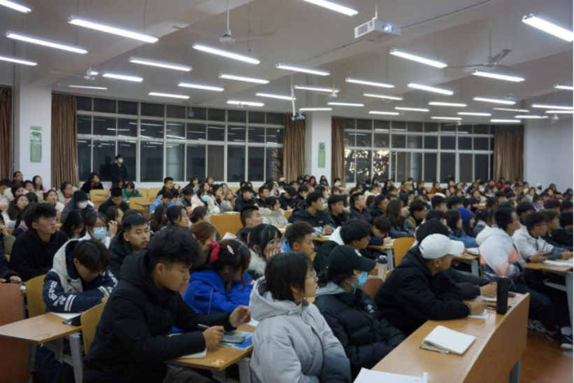 王盼老师从学生干部的沟通能力、协调能力以及突发事件的应对能力三方面向同学们做了报告,希望同学们积极承担责任,努力提升自己,服务同学。