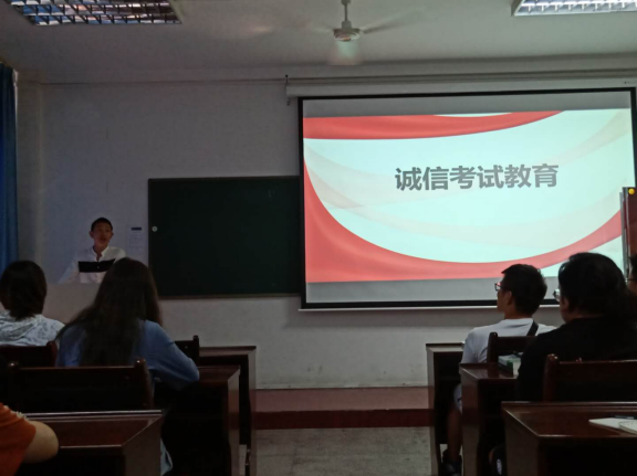 随后,蔺晓珣老师结合近期即将举行的四、六级英语考试,对全体学生干部进行了诚信考试教育。他要求全体学生干部必须积极发挥模范带头作用,遵守考场规定,带领班级同学诚信考试,共同促进优良学风、考风的形成。