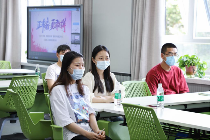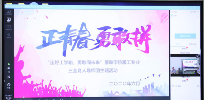 面对高岭校长的亲切关怀,线上线下的同学们都踊跃发言。在疫情防控方面,服工2016级的赵嘉宇说:“我们每位返校学生,甚至是我校海外留学的学子都收到了学校派发的防疫健康包,很感动。校园封闭管理期间,食堂、浴室等生活设施到位,每日晨午体温检测以及辅导员对同学们的密切联系和关注,都让我感受到学校工作的细致妥善!”在专业学习方面,服工专业内衣方向的几位同学也表达了自己在艺工结合的专业环境中的学习感想。工学和艺术,两种不同的思维方式交互碰撞,使艺术专业背景的学生提高了自己的逻辑思维能力,而工学专业背景的学生在艺术鉴赏、服装设计等领域有所发展和提高。服工2016级的翟祖敏说:“这样学科交叉的学习模式,弥补了我的能力短板,激发了我的创新思维,拓展了我的就业范围,促使我找到了现在很满意的一份工作。”2016级服工卓越班团支书邢哲虽未返校,但通过腾讯课堂网络连线与自己的班主任高岭校长线上交谈,共同探讨了疫情影响下怎样就业和更好地进行职业选择。