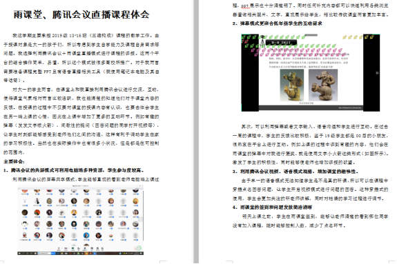 中课程类别最多、课程门类最复杂、授课难度要求也是各不相同的。所有师生面对严峻的疫情,能够全力以赴、认真学习、积极面对这种在线教育的“新变革”,也是在传统教学基础上的一种新的探索。还有很多未知的技术、平台需要学习提高,还有许多未知的情况需要面对,但是教师们还是永远积极地面对这种变革与尝试,在保证熟练掌握各平台的优点、互相结合,最大限度地突破在线授课平台的技术要求,一手抓“硬”件的同时,还需要一手抓“软”,需要教师更多地进行总结,通过建构教学团队、协同作战,将教学内容、教学环节、教学组织做到尽善尽美。