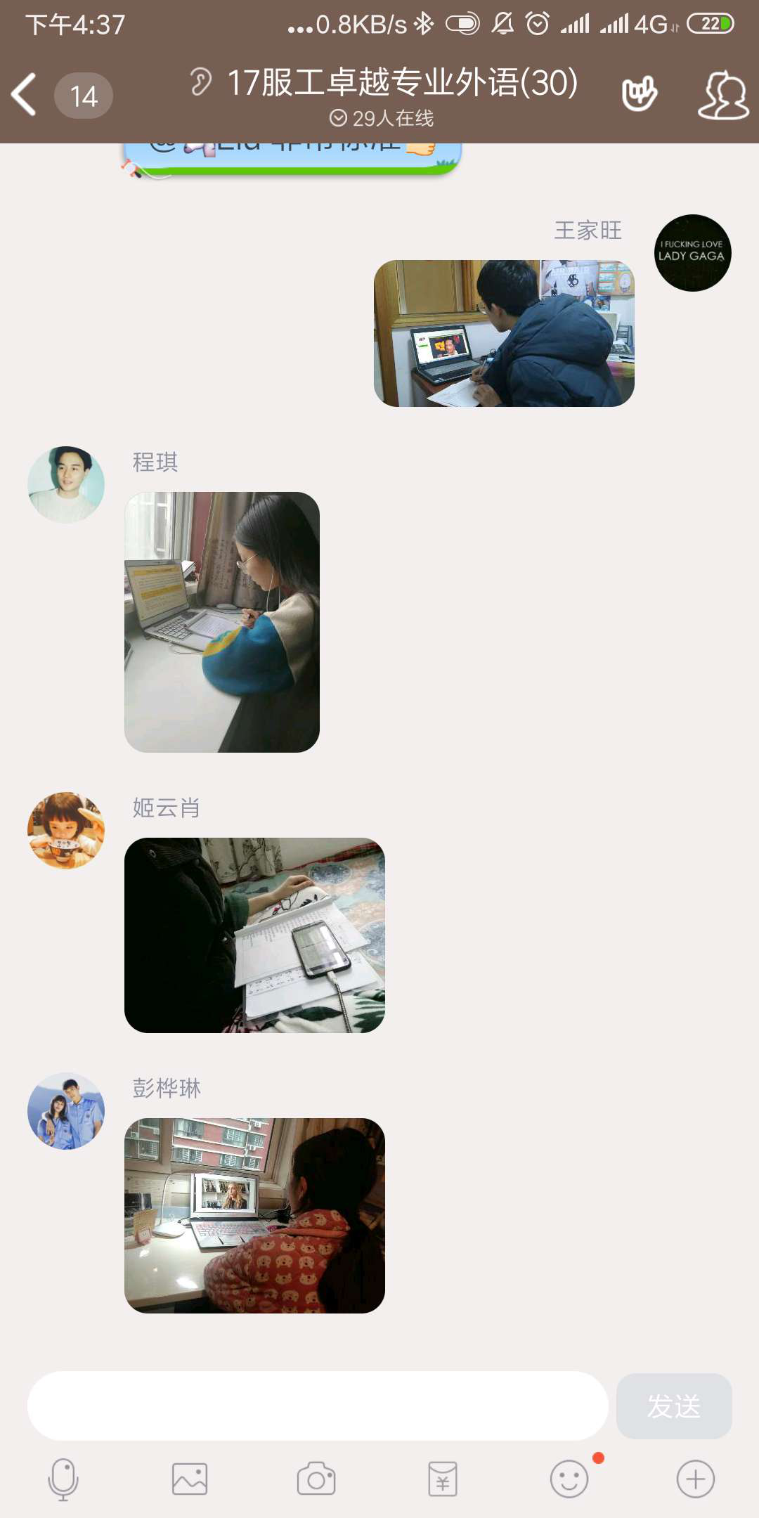 辅导员王丽丽询问17级服工商学班线上课程情况