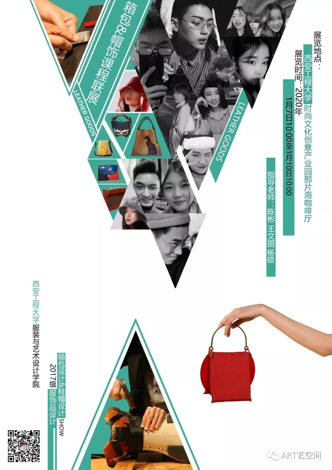 此次展览作品历经两个月时间,从17级服饰品专业1、2班的38位学生作品中甄选出32款手工皮包,18顶帽饰,近距离感受手工皮具、帽饰独有的韵味。鞋帽饰品设计和箱包设计课是服饰设计专业必修课,课程注重在鞋帽饰品、箱包设计课程教学过程中引导学生发挥自身专业能力,拓展深化,在从设计稿到成品制作过程中,大胆创意缔造出设计新概念,进行了视觉上的新试验,提升了设计水平,充分发挥灵感要素,创造新趋势。本次展出内容包含完整的从灵感来源到设计方案和创意表现到最终的成品展示,检验了本学期以来的教学成果和同学们的专业成绩表现。