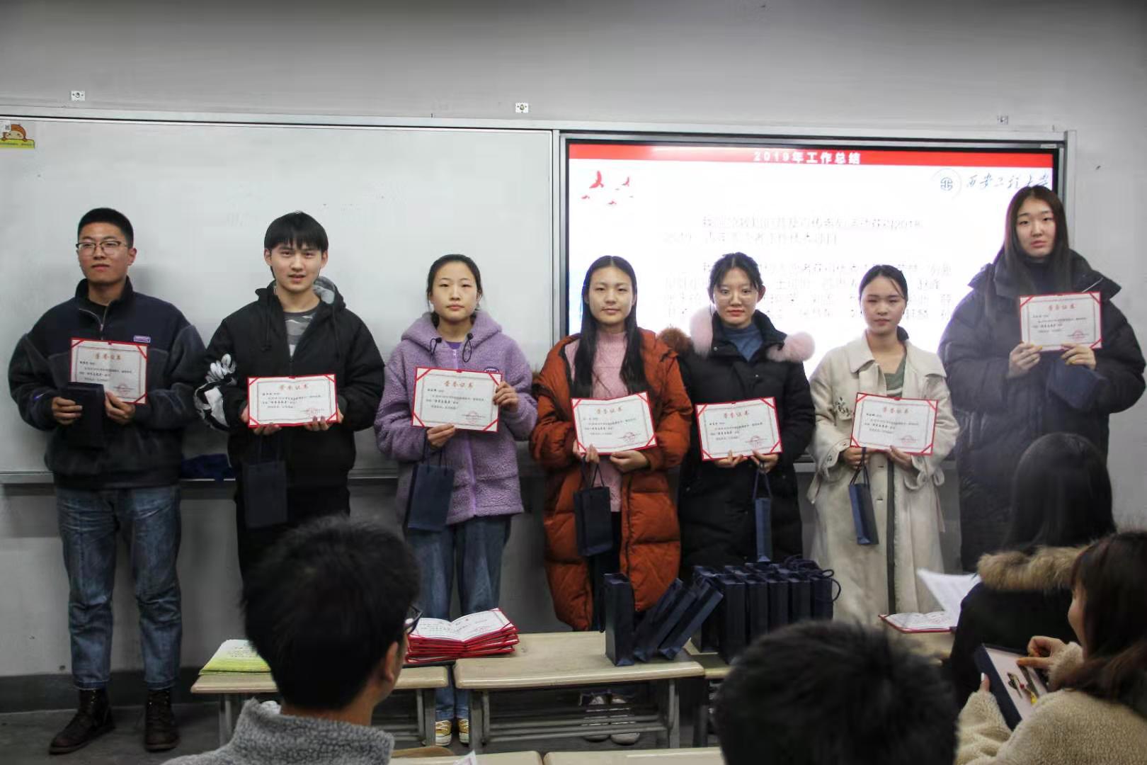 青年志愿者们一年来在校园内外举办了一系列志愿服务活动。急救知识宣传活动、消防安全系列宣传活动、环保服装设计及环保意识宣传活动、“大手拉小手,助力中国梦”助力贫困山区学子成长成才活动、临潼区斜口小学支教、校园双选会志愿服务、2019届毕业典礼志愿服务……一幕幕志愿者们认真工作的现场画面在会议开场视频中再次重现,感动台下每一位同学,尤其是2019级新入队的注册志愿者们。