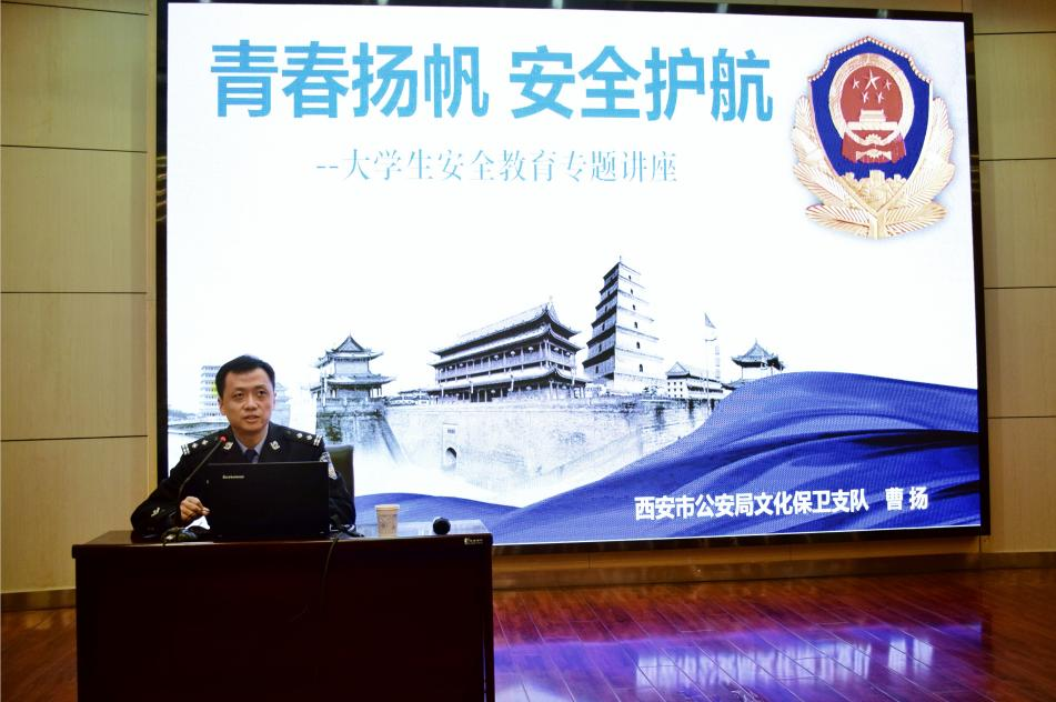 学工办承办的我校大学生安全教育讲座在金花校区举行。讲座特邀西安市公安局文化保卫支队四大队副大队长曹扬警官以“青春扬帆·安全护航”为题为向大学生进行了安全教育。本次讲座是学生工作部和925足球直播