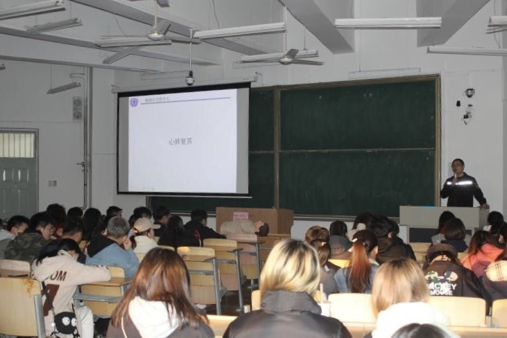 大会伊始,白飞老师就现场急救的目的和紧急急救的重要性进行了演讲。一是通过及时有效的急救措施进行急救;二是发生重大事故时及时急救能够大大降低伤残率;三是通过救护安定伤员情绪,可以减轻伤员痛苦。接下来,雷捷老师就急救的相关知识进行了介绍,一方面向同学们分享各种急救技巧并现场教学急救技能,强调要提高同学们安全意识,加强自我保护;另一方面就预防伤害的能力进行讲解,雷捷老师表示,伤害研究的主要目的就是预防伤害的发生并且减低伤害的严重程度,让同学们提高对伤害预防的意识。急救中心霍朝老师和魏星老师为同学们讲述遇到突发情况时的应急措施并进行了现场示范。刘峰老师就溺水、呼吸道堵塞、创伤救护等一系列知识进行了分析和示范。他强调学会必要的急救知识是前提,但更重要的是能够在他人遇到突发情况时敢于上前救助,及时有效的挽救生命和降低伤害程度。为了提高加强现场学习的效果,老师们邀请同学们进行了创伤急救、非创伤性疾病急救、心肺复苏等一系列现场操作,让同学实操急救技能技巧,提高个人在意外伤害发生时保护自己和他人的应变能力。