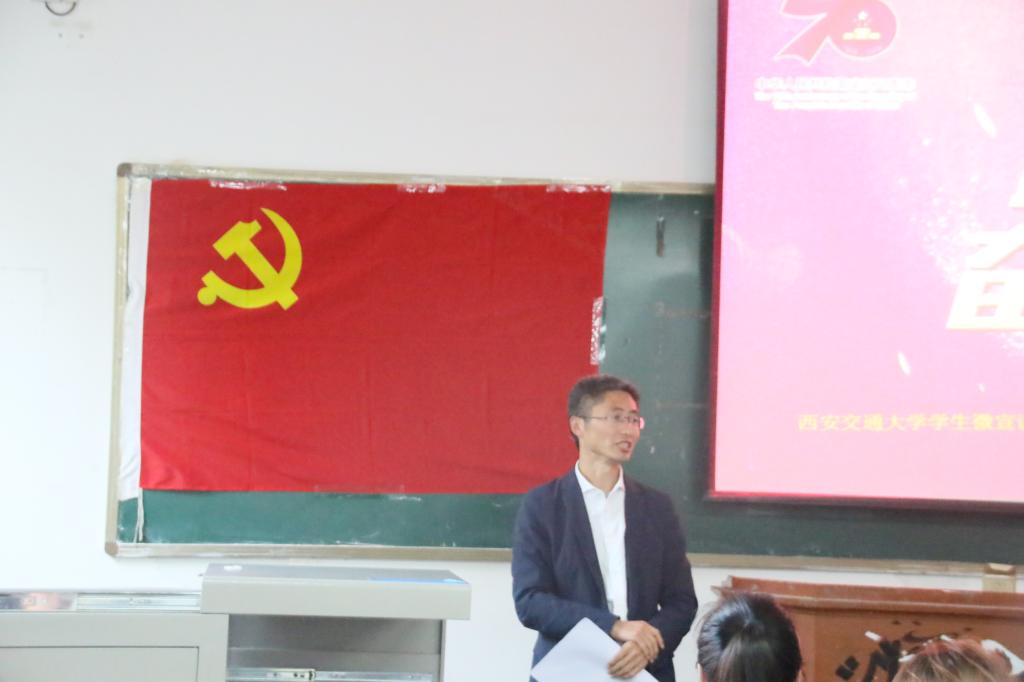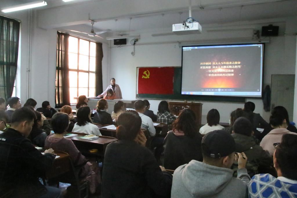 活动伊始,全体党员观摩了“西迁故事”及“最美奋斗者表彰”视频,大家被“西迁人”爱国奋斗先进群体的崇高精神和为西部发展、国家建设奉献智慧和力量的先进事迹所深深打动,并致以崇高的敬意。随后,由西安交通大学学生微宣讲团的三位主讲成员分别围绕“胸怀大局,一路向西”、“回顾校史故事,弘扬交大传统”、“致敬西迁人,奋进新时代”三个主题展开主题教育宣讲,讲述了老一辈西迁人对祖国的热爱、对科学的追求、对青年的提携和扎根西部、建设西部的爱国奋斗故事,传递了“胸怀大局、无私奉献、弘扬传统、艰苦创业”的西迁精神。