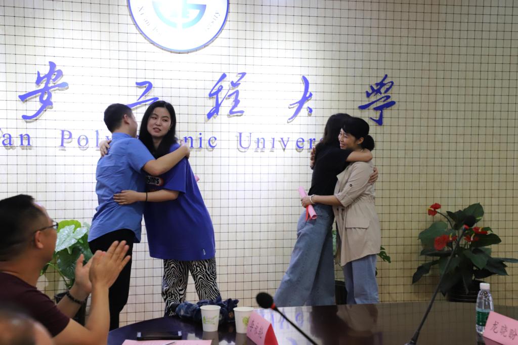 优秀毕业生代表向家长代表递交学习成绩单并相互拥抱