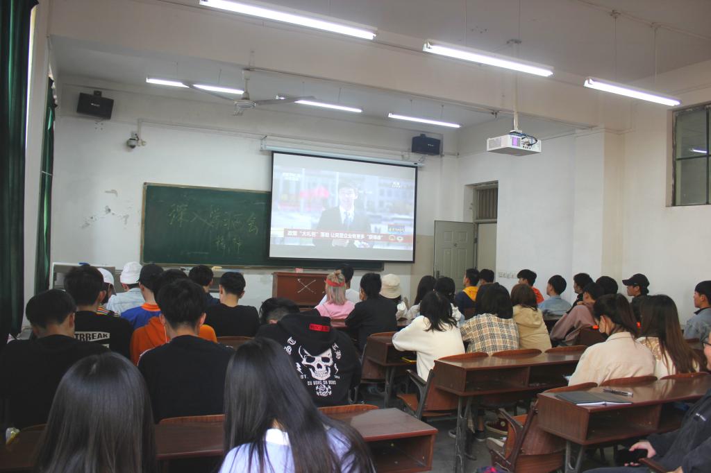 团总支在校团委的号召下,在两校区组织各年级团支部通过宣讲讨论和观看影片等灵活多样的形式于3月28日-4月3日在各团支部中深入开展了“学习两会精神”主题团日活动。