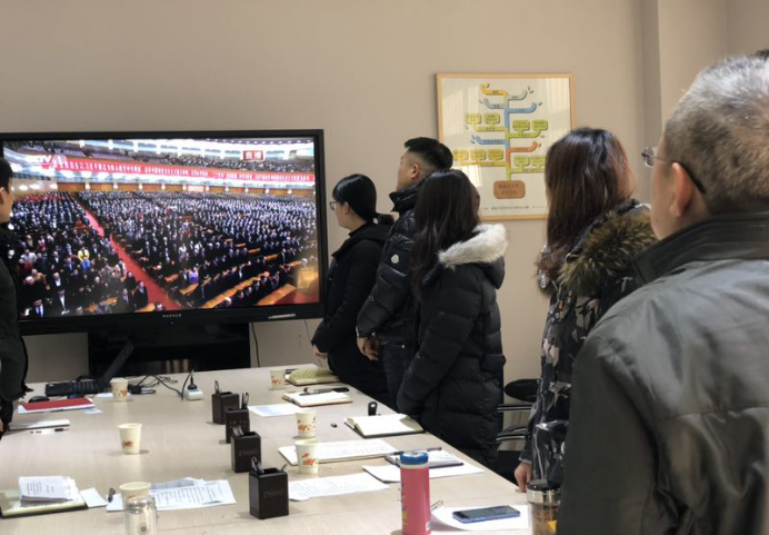 会议室观看《庆祝改革开放40周年大会》现场直播。