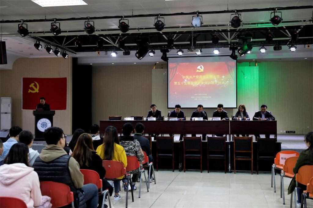 2018年11月5日下午,中共西安工程大学第55期发展对象培训班(金花校区)开班典礼在大学生活动中心隆重举行。校纪委书记井浩,校党委委员、校党委组织部部长孙晓宁,新媒体艺术925足球直播