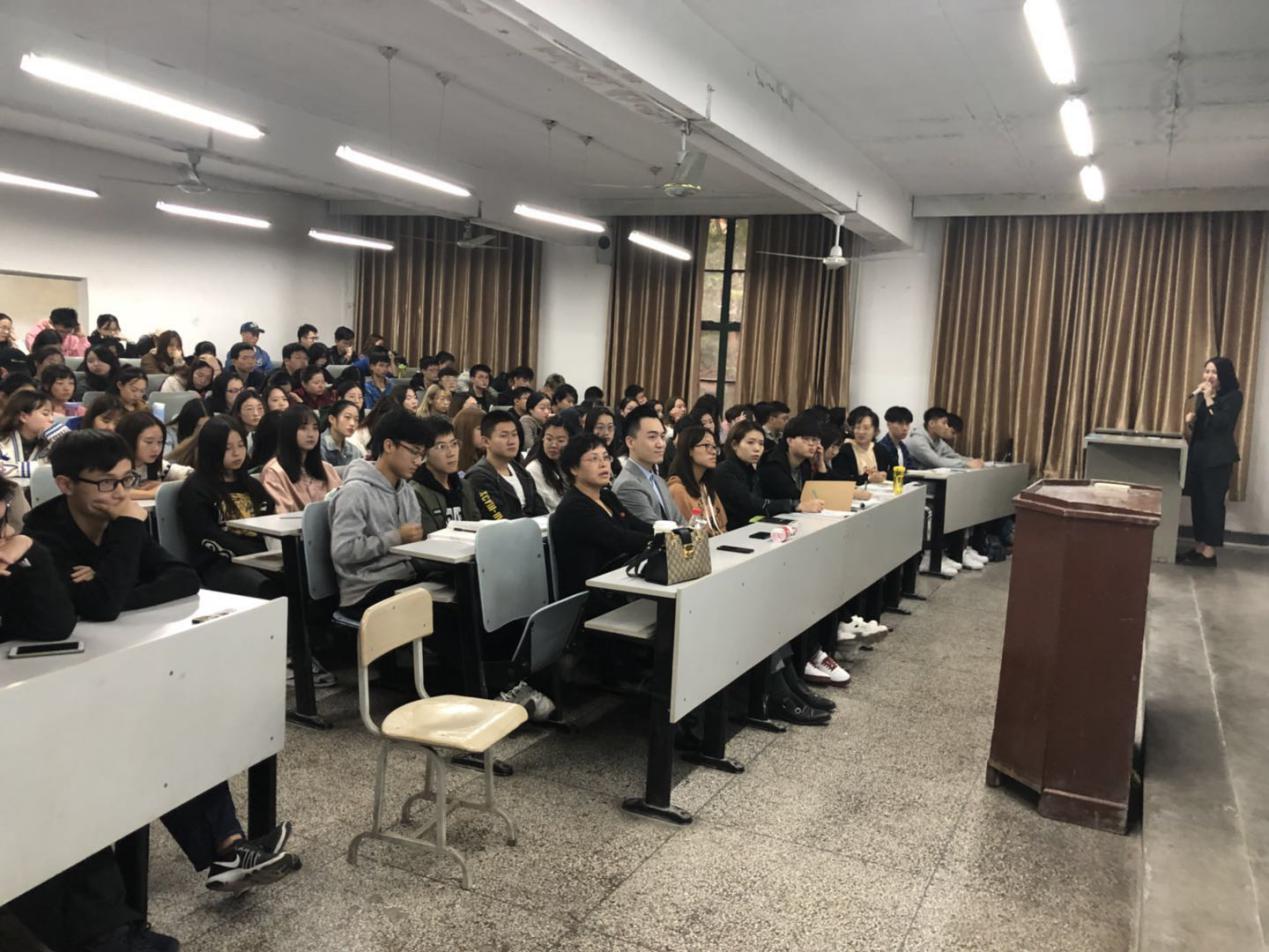 学生对服装市场的了解,加深学生对服装行业演变趋势的认识,2018年10月19日下午,服装商学系在金花校区226教室特邀我校2004级校友、陕西良体才衣服饰有限公司总经理、西安合极服饰有限公司董事长李娇女士作了“定制人生”专题讲座。服装商学系、内衣系共100余名师生到场参加。讲座由服装商学系主任梁建芳主持。