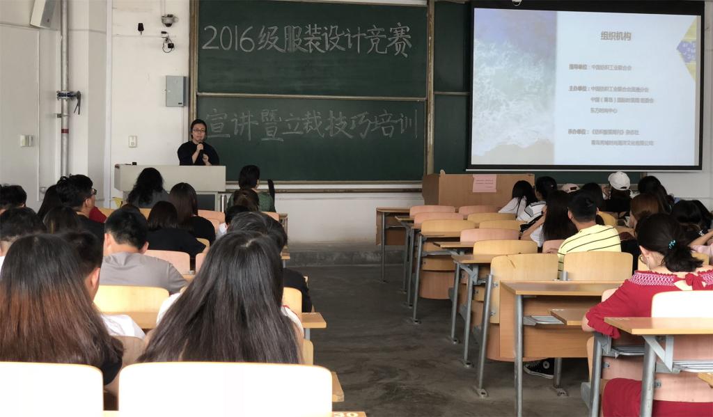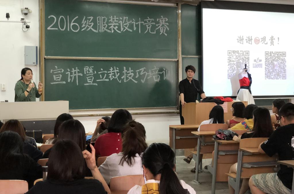 于2018年6月27日下午14:30在临潼校区B-337教室组织召开2016级服装设计竞赛宣讲暨立裁技巧培训,中国纺织工业联合会郭也可、孙洁、“莲御”婚纱礼服创始人朱盺有、925足球直播