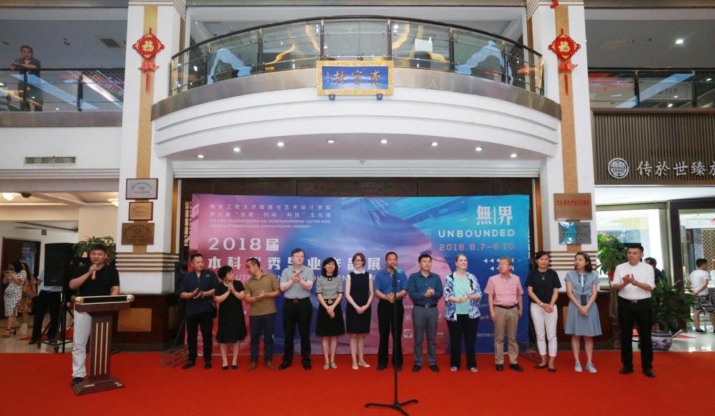 2018届毕业作品展在亮宝楼开幕。美国贝勒大学Rinn M. Cloud教授、明尼苏达大学服装设计系Lucy E.Dunne副教授、加州州立大学北岭分校曹薇教授、西安工程大学纪委书记朱君强、西安工程大学副校长黄新波、教务处副处长张克英、新媒体925足球直播