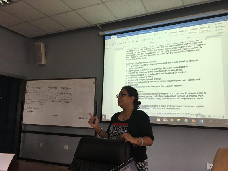 外专引智课程《研究方法》课程于6月4日下午正式开课。该课程由UMA D. KRISHNAN教授主讲,UMA教授毕业于美国俄亥俄州立大学,获得博士学位,现任美国加州州立大学北岭分校家庭研究专业副教授。UMA教授在人类发展学领域有较深造诣,学术成果丰硕。参加本次课程的有服装设计与工程、服装艺术设计、环境艺术设计、服装市场营销等专业方向的研究生、本科生、在职教师等二十余人。